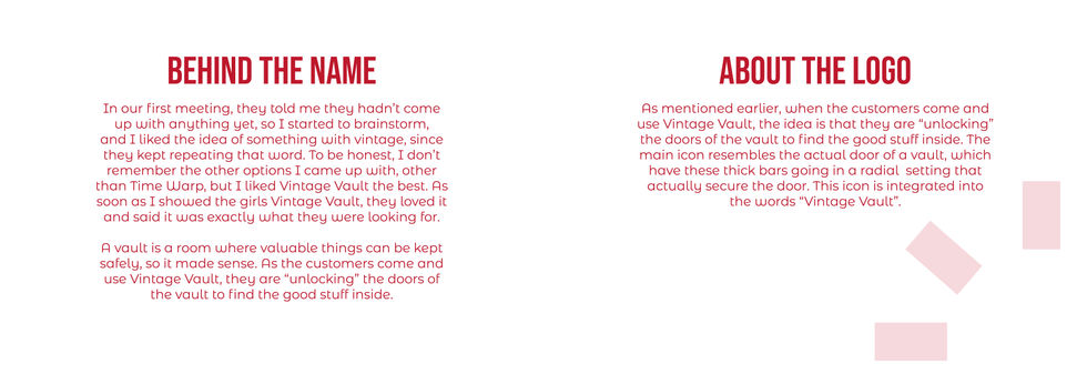 For this project, I developed a complete brand identity book for Vintage Vault, a vintage clothing search engine. The initial idea for the brand was created by students in a fashion class, which I treated as my clients—just as a real design firm would. I took the lead in conceptualizing and crafting every aspect of the brand, from defining its core identity to designing the visual language, logo, typography, color palette, and imagery. The goal was to create a brand that felt both nostalgic and modern, embodying the essence of vintage fashion. Throughout the process, I collaborated closely with the fashion students to align the branding with their original vision. The result was a cohesive brand identity that not only represented Vintage Vault effectively but also showcased how design and fashion intersect in the real world. This project allowed me to apply brand strategy, visual storytelling, and client communication, mirroring the workflow of a professional design studio.